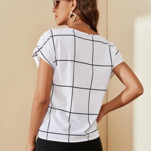 BLUSA ESTAMPADO DE CUADROS CUELLO NOTCH